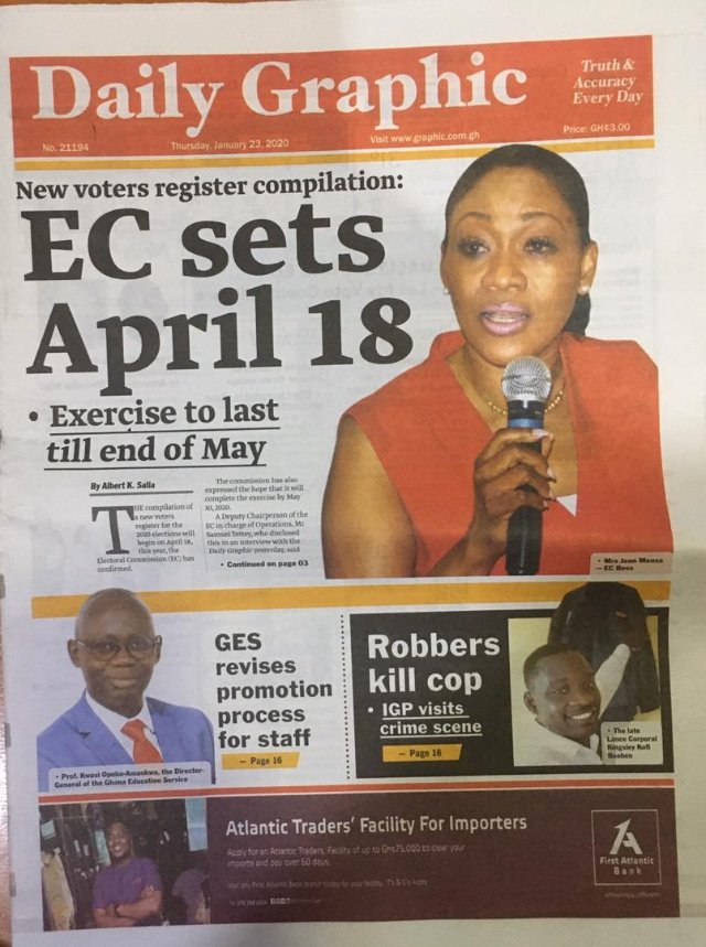TODAY'S FRONT PAGES: THURSDAY, JANUARY 23, 2020Wentitrel MultimediaJan 23, 20201 min read Credit to Source: Myjoyonline