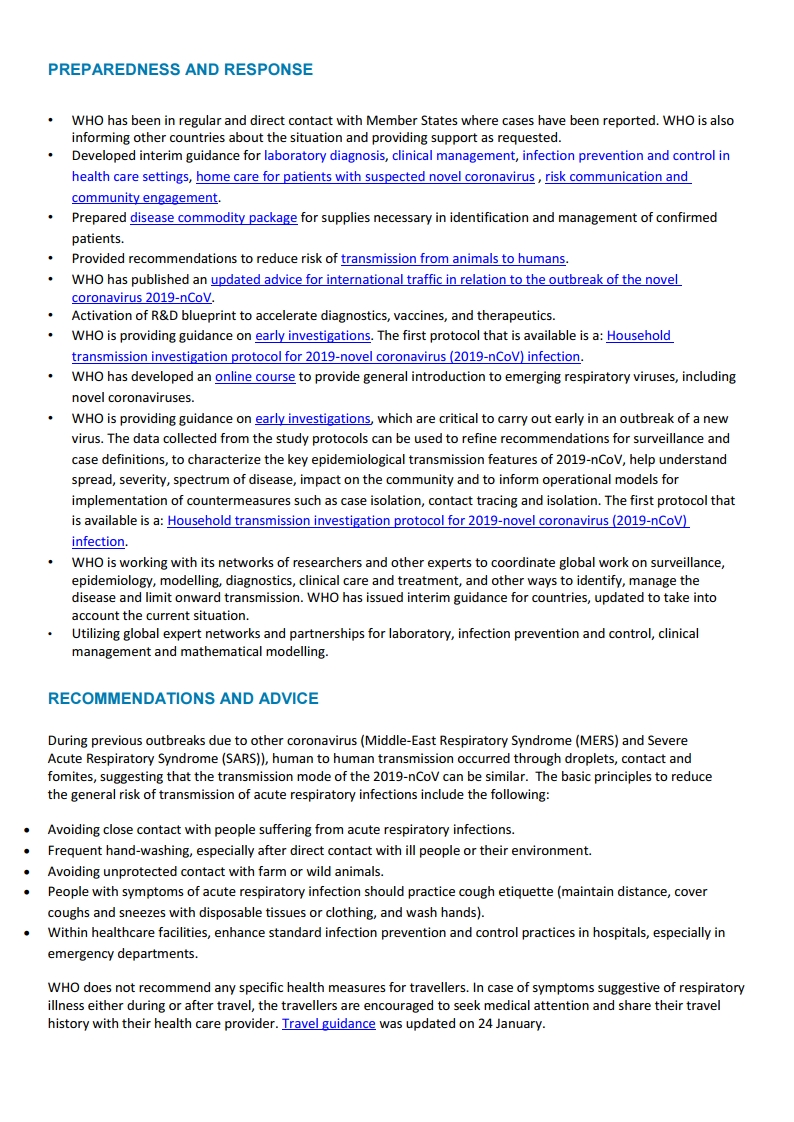 As transmission of novel coronavirus appears similar to that for MERS and SARS, WHO has recommended basic principles such as avoiding close contact with those suffering from acute respiratory infections, frequent handwashing, and enhanced infection prevention practices in healthcare facilities.